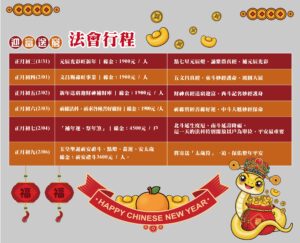 今年過年新春禮斗大全包法會,安太歲、蓋運、點燈 + 初三到十五科儀 + 一年一度補年運、祭年度煞神 + 送窮神迎財神 + 祈安禮斗 + 上元天官祈福手書。