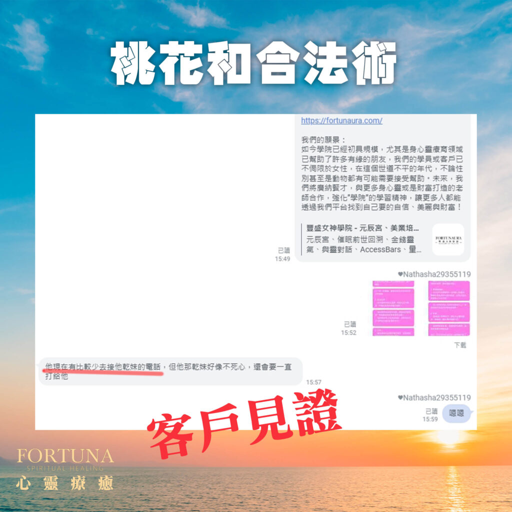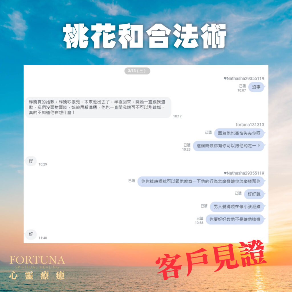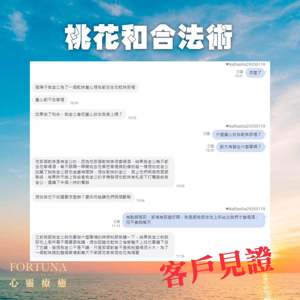有一位已婚女人訴說她老公跟小三好起來,重心不在家裡,前來向Fortuna老師求助,老師除了調整元辰宮臥室之外,還做了桃花和合的法術,以下是案例分享