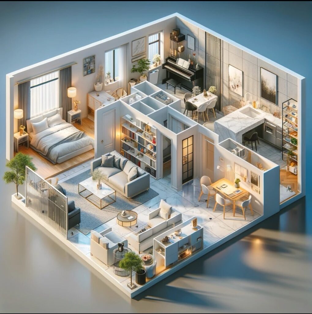 背景:一位長期負能量纏身的人,過去幾年壓力巨大,經常情緒低落,甚至有憂鬱傾向。他的元辰宮呈現昏暗、破敗、雜亂無章,且有許多枯萎的植物與積水。