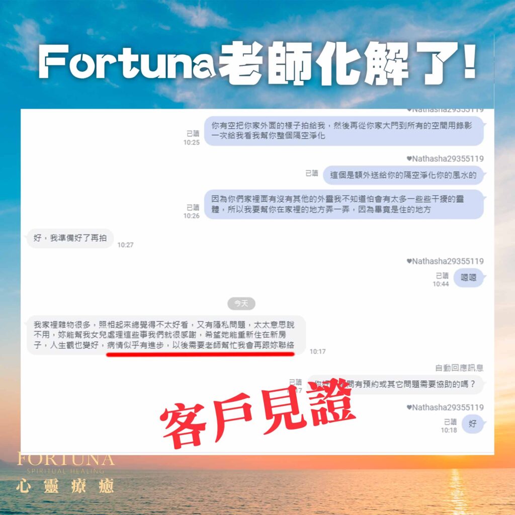 Fortuna老師因通靈體質,每天除了幫助需要的人整體元辰宮,含有幫元辰宮搬家,再來就是向上述的真實案例會處理特殊案件,多為好評!
